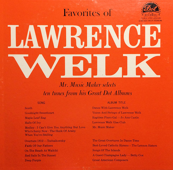 TIME-LIFE (US): R986-14 - Instrumental Favorites - Lawrence Welk [1995] Champagne Time (S)/Calcutta (M)/Out Of A Clear Blue Sky (S)/Misty (M)/On A Clear Day You Can See Forever (S)/If I Loved You (S)/Be My Love (S)/I'm Forever Blowing Bubbles (S)/Apples And Bananas (S) / Wonderful Wonderful (S) / Josephine (S)/I Whistle A Happy Tune (S)/Scatterbrain (S)/My Isle Of Golden Dreams (M)/Mockin' Bird Hill (M)/Melodie D'Amour (M)/Me And My Shadow (M)/To Each His Own (M)/I Guess I'll Have To Change My Plan (S)/Tie A Yellow Ribbon Round The Ole Oak Tree (S)/Bubbles In The Wine (S, remake of 1939 hit used as his theme)/Jean (S)/ Spooky (M)/Adios Au Revoir Auf Wiedersehn (S) |