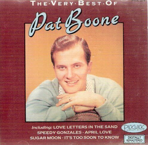 PICKWICK (UK): PWK 074 - The Very Best of Pat Boone - Pat Boone [1988] The rerecordings are the 1959 Dot remakes from Pat's Greatest Hits. I'll Be Home (M, hissy)/Love Letters In The Sand (S, rerecording)/A Wonderful Time Up There (S)/Johnny Will (S)/Sugar Moon (S)/Ain't That A Shame (M)/April Love (S)/Don't Forbid Me (S, rerecording)/Remember You're Mine (S, rerecording)/Speedy Gonzales (S)/I Almost Lost My Mind (S, rerecording)/It's Too Soon To Know (S)/Moody River (S)/The Main Attraction (M)/There's A Goldmine In The Sky (S)/Friendly Persuasion (S, rerecording) |